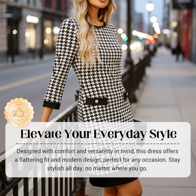 🏆 Hot Sale - 49% OFF ✨Women's Crew Neck Houndstooth Bodycon Midi Dress