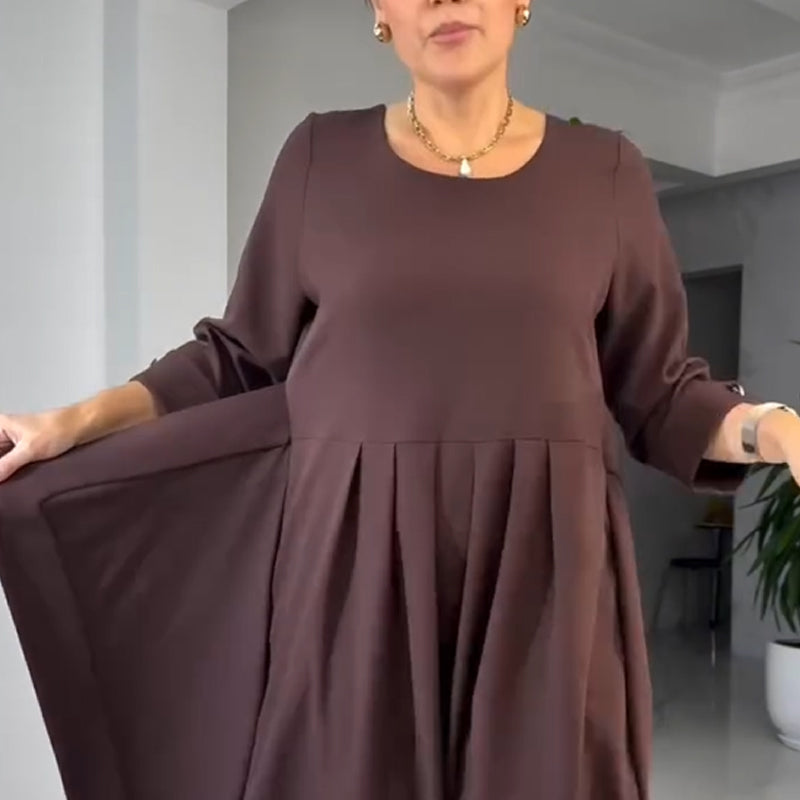Package Include: 1 * Women's Round-Neck Pleated Patchwork Midi Dress